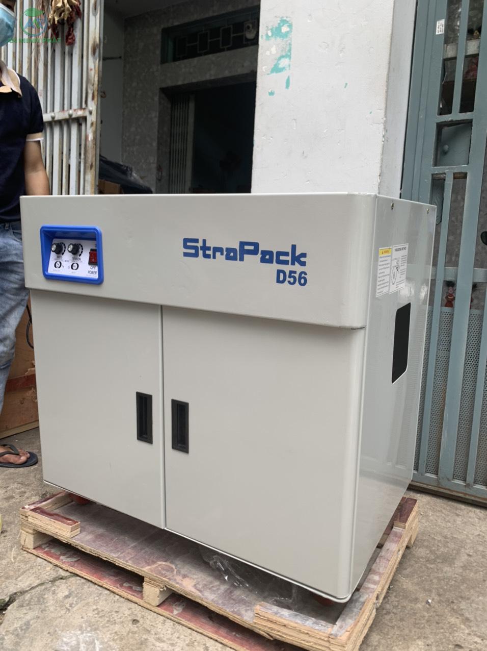 Ưu điểm của Máy đóng đai bán tự động Strapack model D56: - Điều chỉnh được độ dài hay ngắn của dây phóng ra. - Thùng kín, sử dụng trong môi trường bụi bẩn.